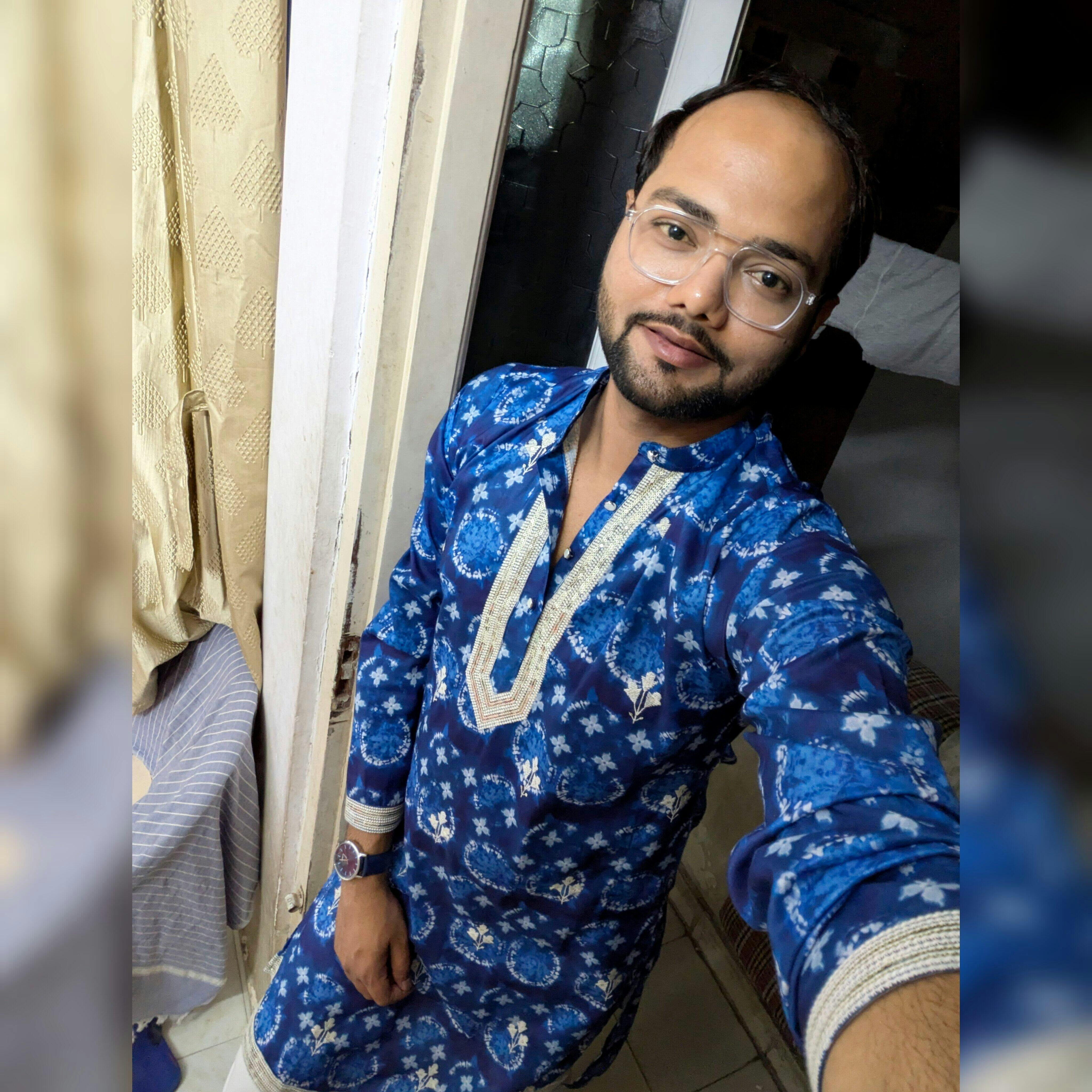 Blue Sweet Linen Men's Kurta with Sequin Neck-work Embroidery, Tie & Dye Pattern by Firangi Yarn